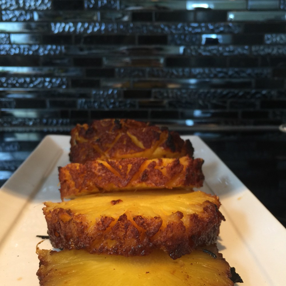 Legg hele ananasen i en bakke eller en skål og strø godt med brunt sukker over den. Du vil se at sukkeret begynner å løse seg litt opp nesten umiddelbart. Dette er fordi ananasen er våt av saften fra frukten. Sprinkle gjerne kanel på også. Dette gjør den grillede ananasen enda mer eksotisk å spise – garantert. Noen drysser gjerne litt chilipulver på, men dette har jeg ikke testet enda. Prøv deg frem med det du ønsker om du er av den vågale typen eller ta det litt etterhvert når du har smakt det en gang eller tre. For du vil garantert lage dette igjen!