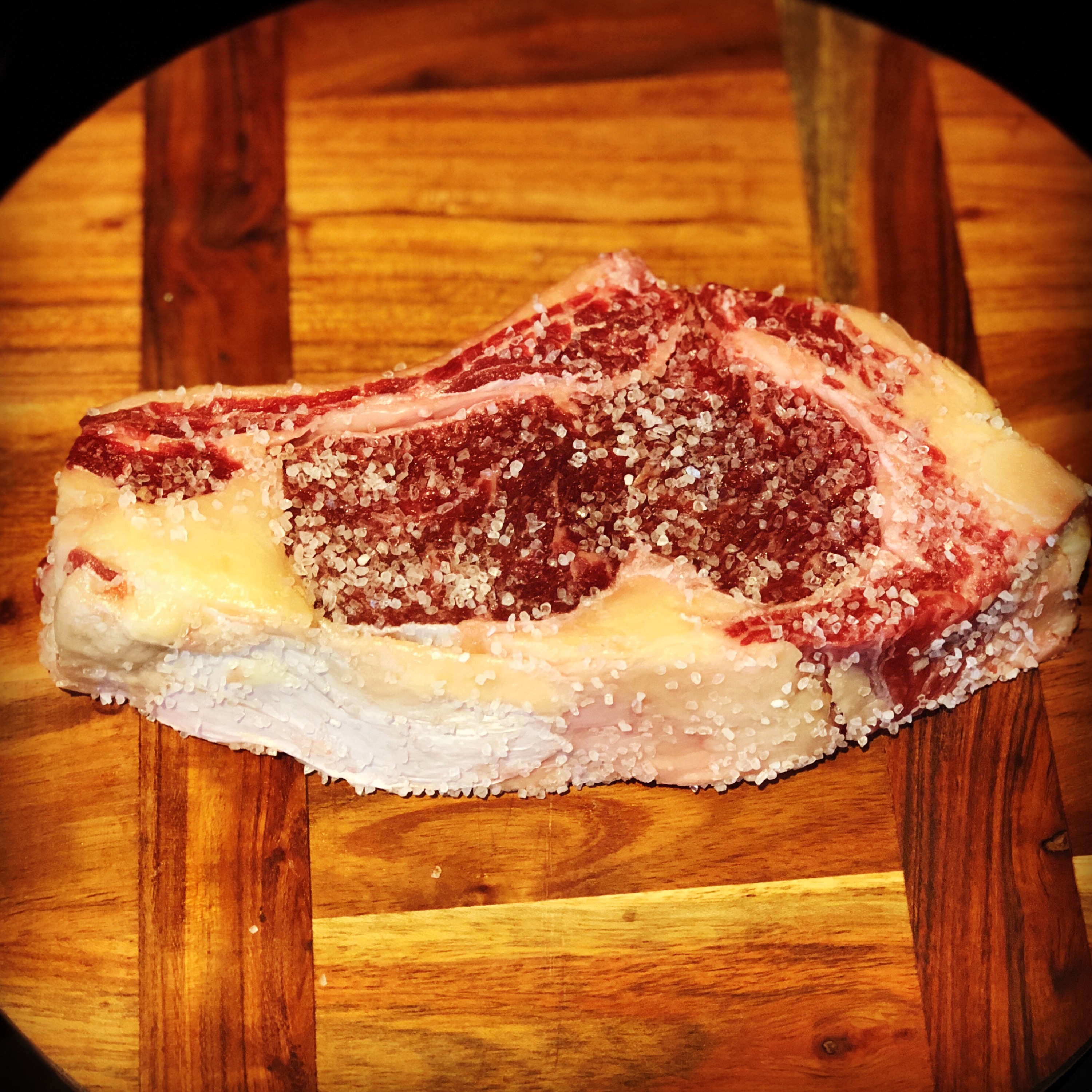 Pass på kjøttet og brun det godt på begge sider. Når brunfargen er slik du ønsker den, så legg den på indirekte varme, stikk inn et termometer og lukk igjen lokket og nyt litt drikke til kjernetemperaturen er ca 57 grader, da er den medium. Men husk, nå er ikke tiden å miste fokuset ved å fikle med noe annet, som f.eks lage salat. Er ikke salaten eller tilbehøret ferdig? La noen andre gjøre det. Du har uansett et fullt måltid i en slik stykke!