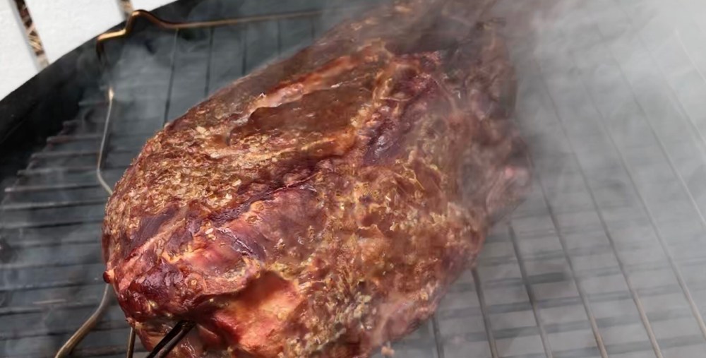 - Sett opp grillen din slik at du har som mål å varmebehandle kjøttet over tid på indirekte varme, ca 125 grader. Legg gjerne noen gode biter med eik eller andre gode vedsorter som gir fin røyksmak.