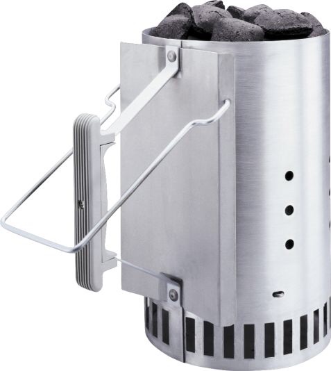 Fyll øvre kammer med briketter eller kull, fyr opp noen opptenningsposer eller briketter og sett grillstarteren oppå flammene, evt dropp opptenningsbriketter og sett støpslet i hvis du har elektrisk opptenning. De nederste hullene sørger for luft til flammene som deretter antenner det nederste kullet. Varmen stiger og kullene over antennes etter tur. Etter 15 -20 minutter skal normalt alt kull gløde eller brenne.