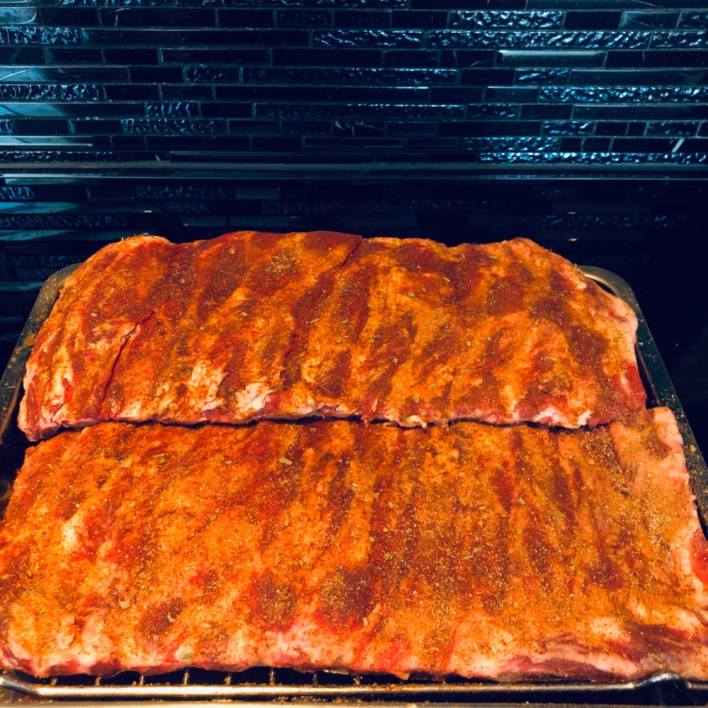 Rub trenger du ikke ta på før rett før ribsene skal på grillen/smokeren. Kryddermolekyler trekker dårlig inn i kjøtt og fett, i motsetning til salt!