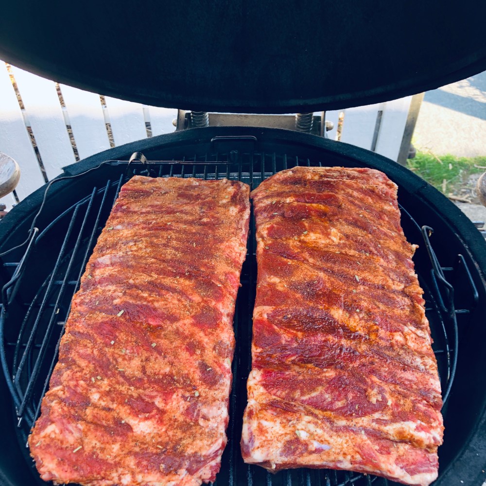 Jeg bruker ofte en rub som kalles Memphis Dust på svinekjøtt, også på disse ribsene. Den er alltid en vinner. Du finner den på nettsiden AmazingRibs.com