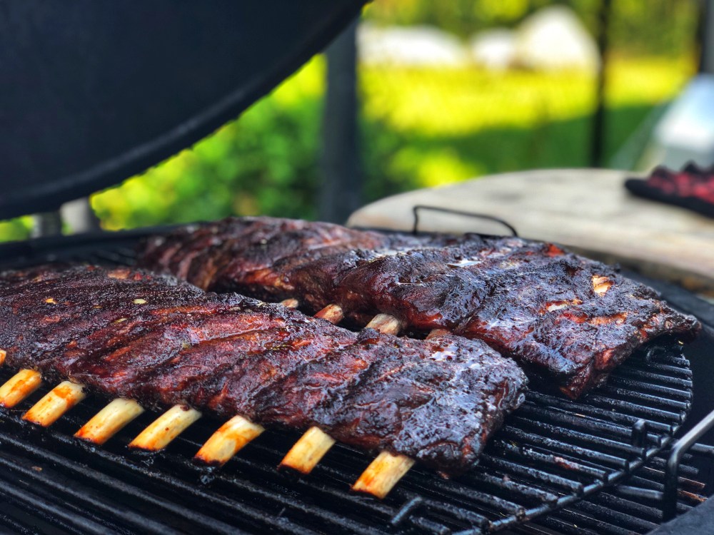 Legg på ribsene. Har du liten plass eller for mange ribs, så finnes det holdere for ribs – har du sjekket billigvarienten som er lokkholderen fra IKEA i rustfritt stål? Jeg bruker den, men det finnes andre som er spesialdesignet for formålet.