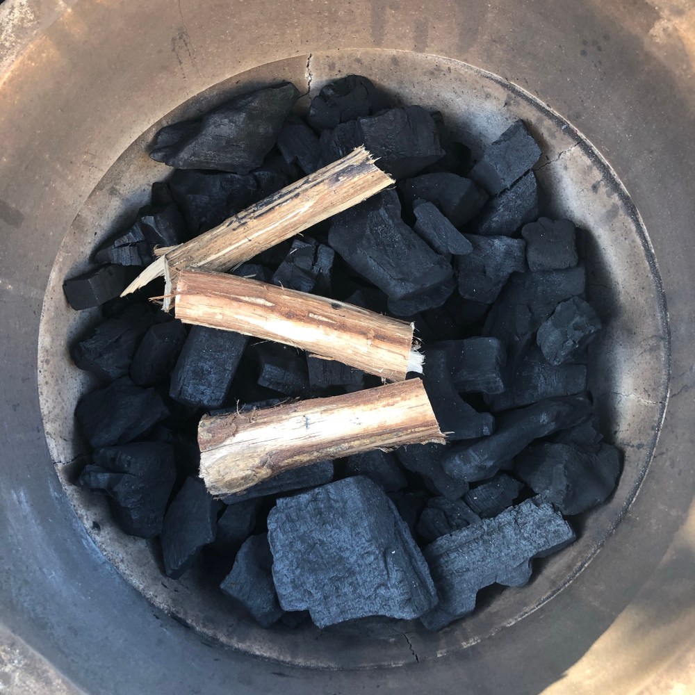 - Sett opp grillen din slik at du har som mål å varmebehandle kjøttet over tid på indirekte varme, ca 125 grader. Legg gjerne noen gode biter med eik eller andre gode vedsorter som gir fin røyksmak. Tenk enkelt. Men ikke bruk ved fra nåletrær. Da blir smaken beisk.